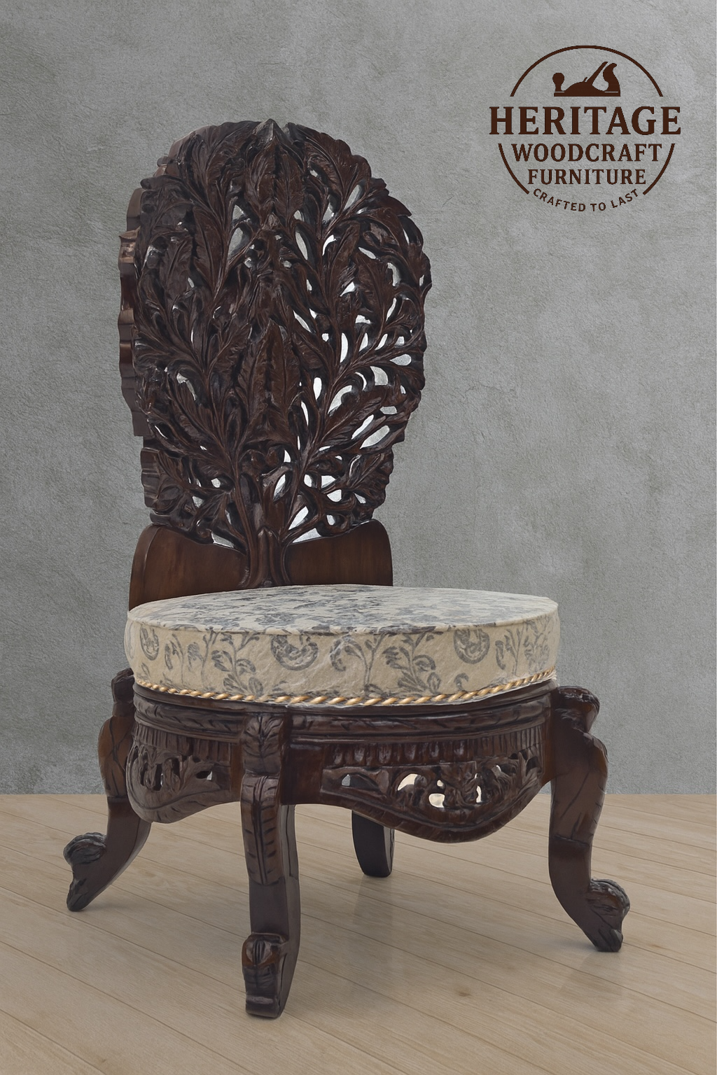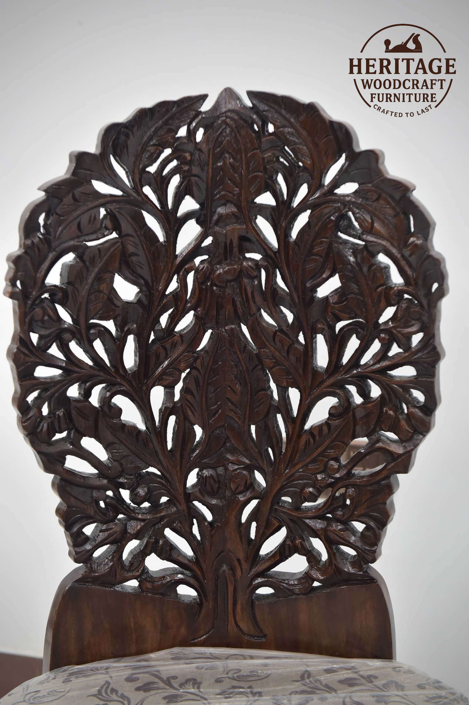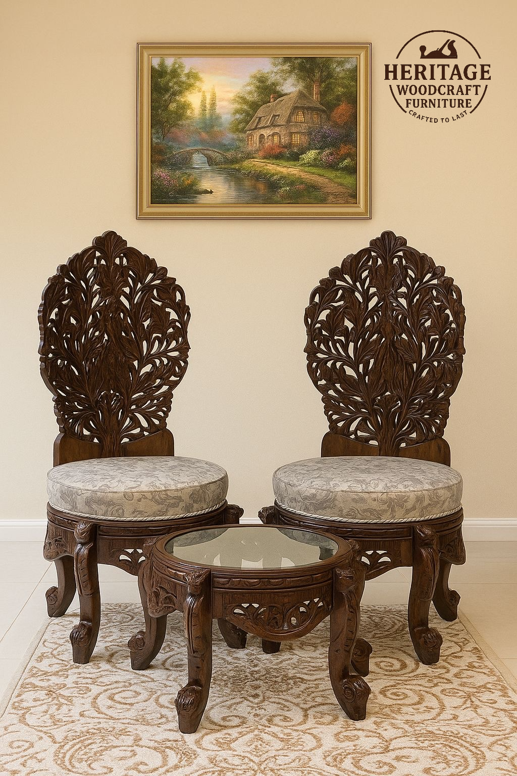 Elevate your living space with this exquisite Handcrafted Solid Wood Carved Chair Set, meticulously